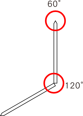 紙一重で切れ目を入れ、120度になるよう折り曲げる。
