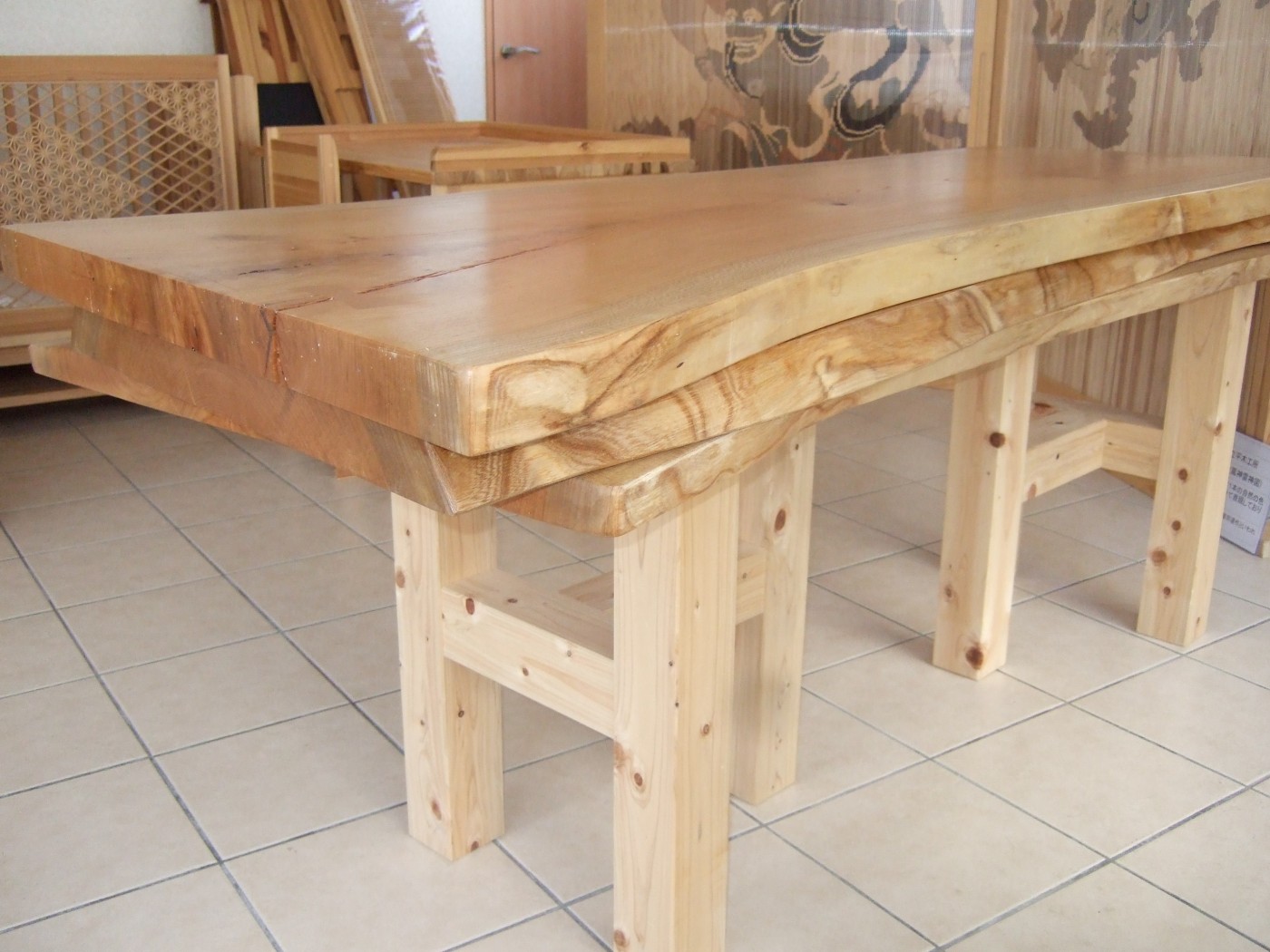 他にもタモ、ナラ、ウエンジの1枚板あります。